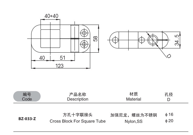 方孔十字聯(lián)接頭,輸送線配件